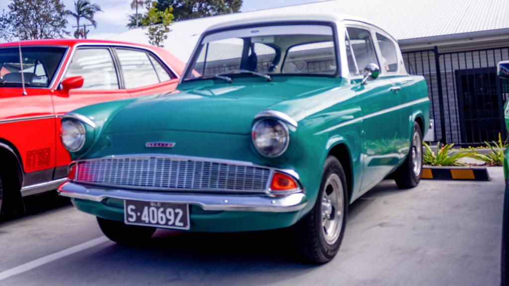 Mark Fenech's 1963 Maroon Ford Anglia 10SE ....